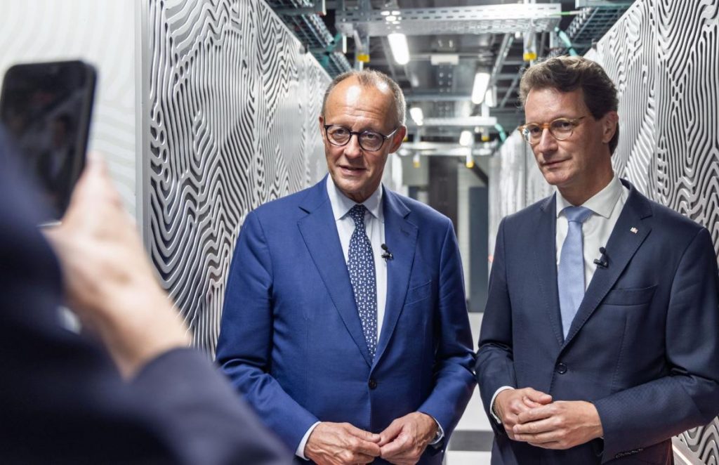 German Chancellor Friedrich Merz and Prime Minister of North Rhine-Westphalia Hendrik Wüst in front of JUPITER.